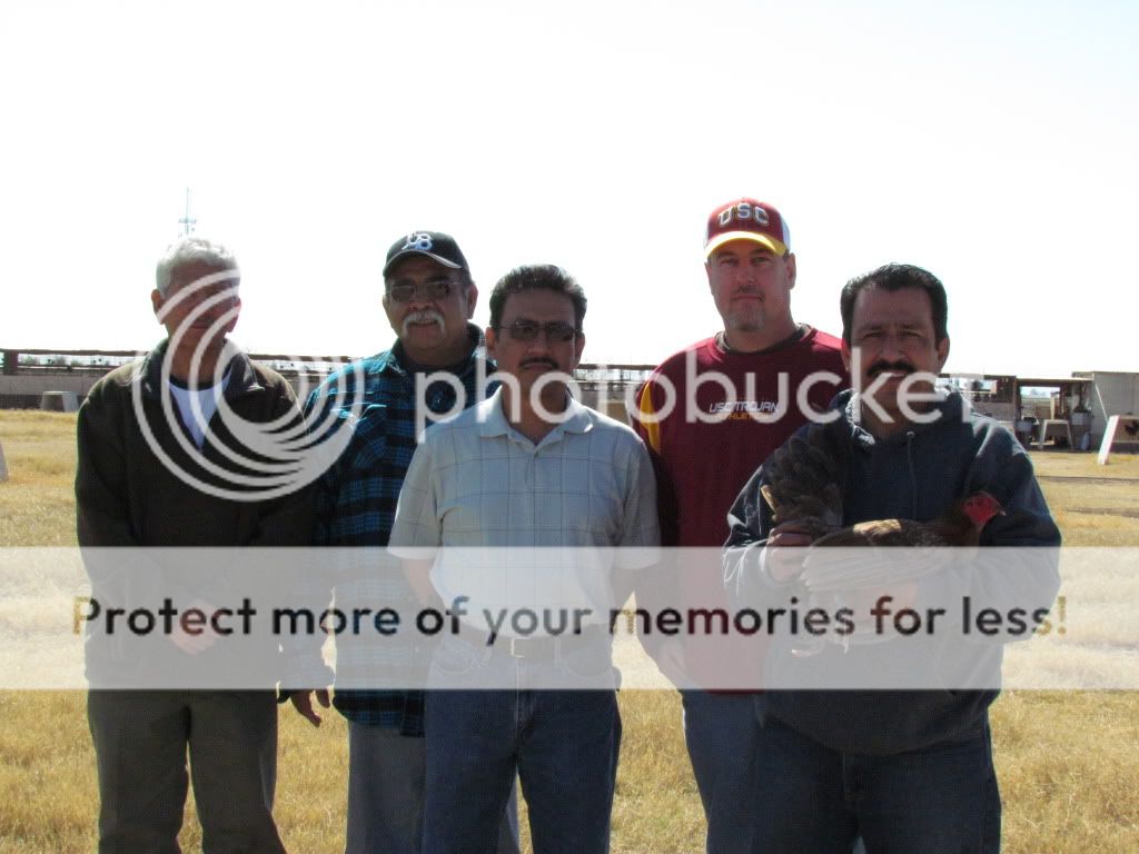 Rafa, Manuel, Carlos H., Brian, Estevan H. (Holding a Chocolate Henny Brood Cock)