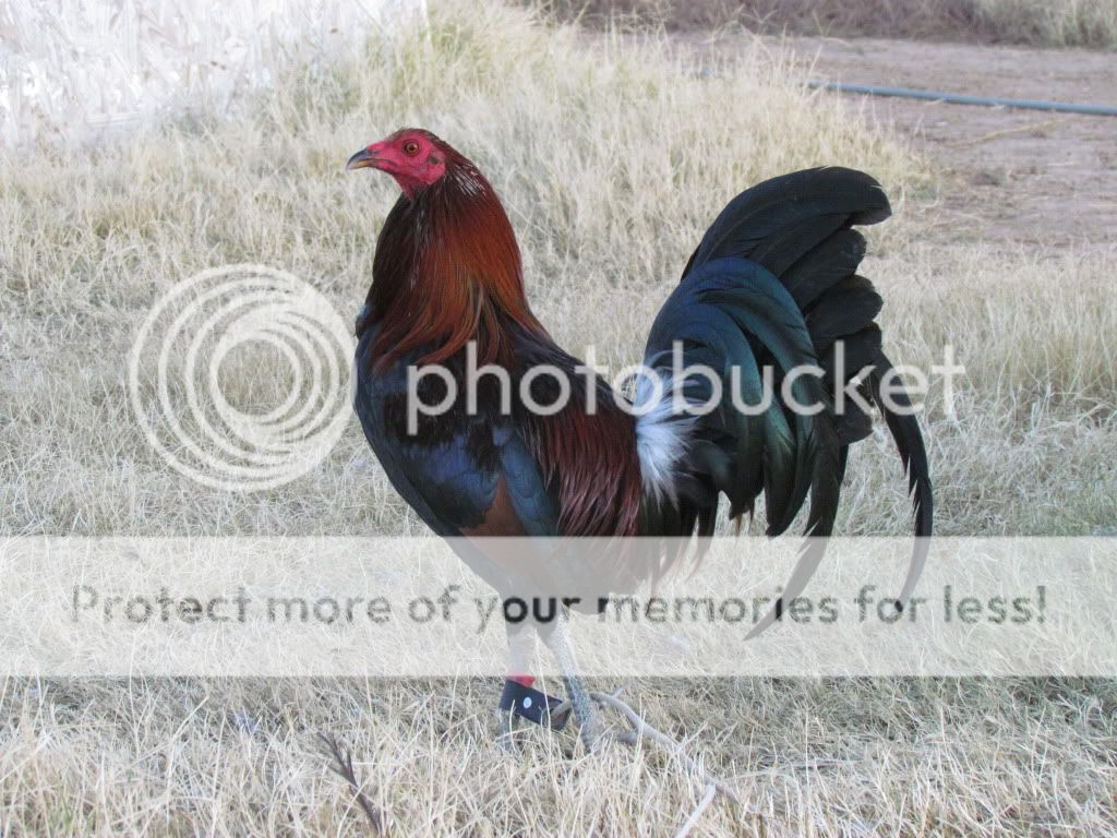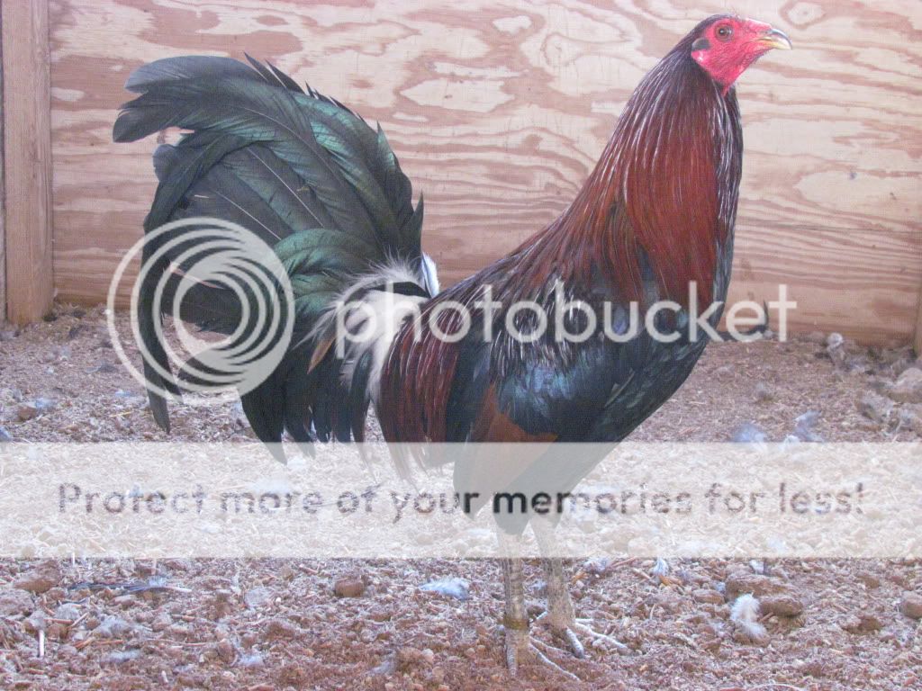 100% Peacomb, Green/Blue Leg, Red Eyes. Most come Dark-Red.